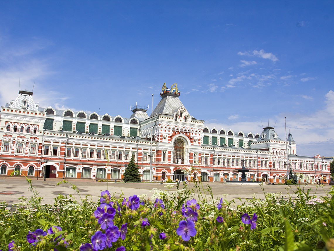 Посмотрим издалека на прообраз Исаакиевского собора, Староярмарочный Спасский собор, самое старинное здание Нижегородской ярмарки. И, конечно же, увидим Главный ярмарочный дом.