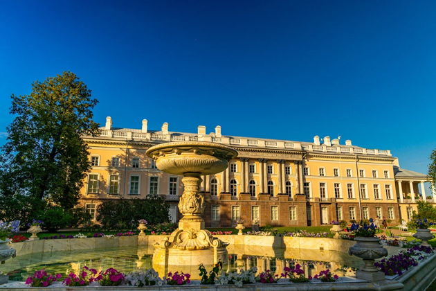 Участие в строительстве принимали лучшие русские архитекторы и выдающиеся итальянские зодчие. В 1752 году дворец был перестроен архитектором Ф.Р. Растрелли. Вы увидите его знаменитую "Золотую анфиладу", которая протянулась через весь дворец и объединяет многочисленные внутренние помещения. Внутреннее убранство и залы дворца поражают своим великолепием и произведениями искусства. Трудно себе представить, что во время войны дворец был большей частью разгромлен и разграблен. Потребовались десятки лет на тщательную историческую реконструкцию.