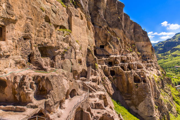 Вардзия — символ Золотой эпохи Грузии, времени правления царицы Тамары. Рукотворный скальный комплекс был высечен в XII веке и представлял собой сложную 13-уровневую систему сообщающихся помещений, в которых располагались библиотеки, жилые комнаты, улицы, площади и церкви. От города осталась небольшая часть, но и она даст вам возможность почувствовать дух древности.