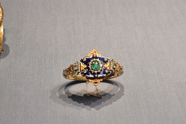 Бриллиантовая кладовая – истинная сокровищница Эрмитажа, скрытая от посторонних глаз. Она задумывалась, как «комната» для драгоценностей. Изначально здесь хранились императорские регалии и украшения. Со временем коллекция пополнялась и превратилась в отдельную экспозицию музея, где на данный момент представлены ювелирные изделия: гарнитуры, трости, часы, оружие, табакерки, церковная утварь, иконы и другие предметы, созданные из золота и серебра, драгоценных камней и жемчуга.