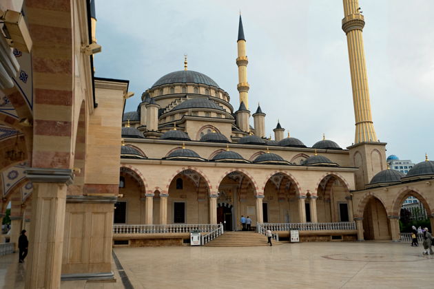 Соборная мечеть «Сердце Чечни» — визитная карточка Грозного. Открыта 17 октября 2008 года и названа именем Ахмат-Хаджи Кадырова, первого Президента Чеченской Республики. Мечеть одна из самых больших, красивых и величественных мечетей Европы и мира. Она располагается на живописном берегу реки Сунжа, посреди огромного парка (14 га). Мечеть построена в классическом османском стиле. В качестве архитектурного образца использована Голубая мечеть в Стамбуле. Площадь мечети составляет 5000 квадратных метров, а вместимость более 10 тысяч человек. Столько же верующих могут молиться и в примыкающей к мечети летней галерее и площади.
