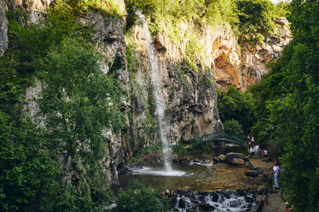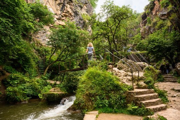 Проход по сложному рельефу русла облегчают мостики и лестницы с перилами. В ущелье каждый из водопадов разной высоты открывается взору по очереди — Жемчужный, Чертова Мельница, Безымянный и главный 18-метровый водопад Большой Медовый. А немного в стороне боковой речкой образован ещё один небольшой водопад Эчкиваш.