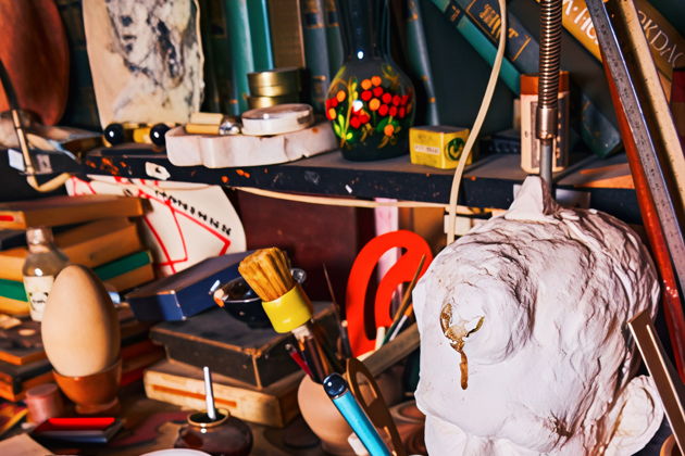 Долгое время комната была закрыта, здесь сохранились картины, книги, краски и скульптуры.