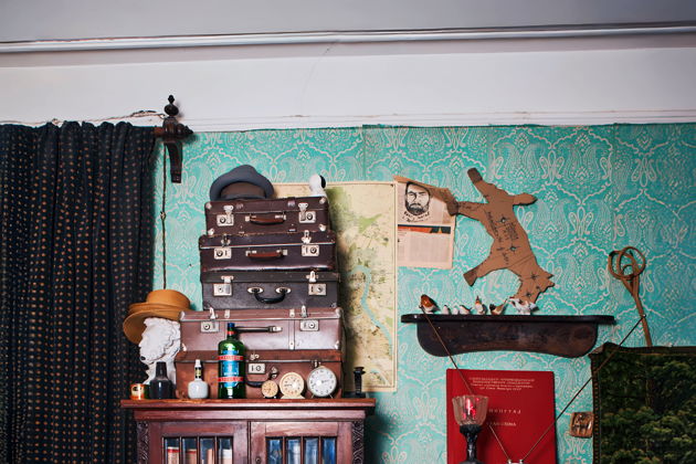 • Комнату Сергея Довлатова — «Ундервуд», старый телефон, изразцовый камин, вещи шестидесятых; сюда заходили Бродский и Рейн.