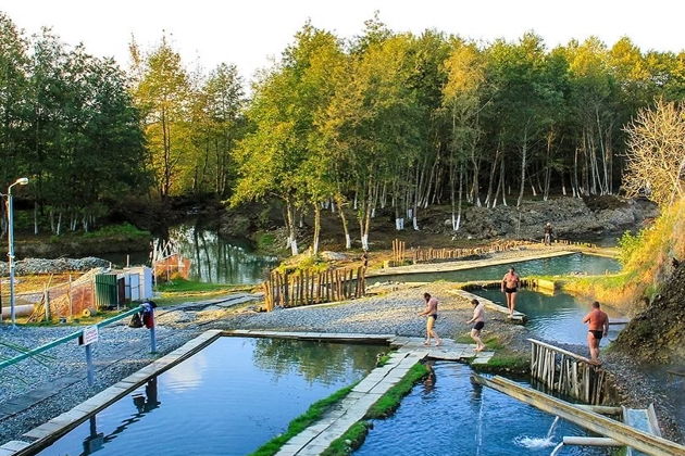 После насыщенной экскурсии мы отправимся отдыхать в термальный комплекс Кындыг. Здесь расположены три бассейна с водой 40-35°С, целебные грязевые ванны и гидромассаж. Вас ждут два часа природного СПА-релакса в окружении эвкалиптовой рощи.