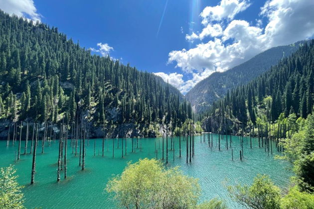 • Озёра Кольсай и Каинды — словно сошли со страниц сказки. Бирюзовая гладь воды, окружённая хвойными лесами и горами, создаёт ощущение волшебства. Озеро Каинды удивит вас затопленным лесом, создающим уникальный подводный ландшафт.