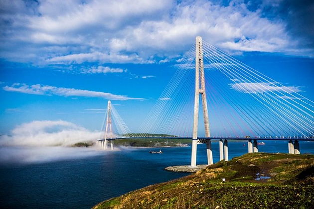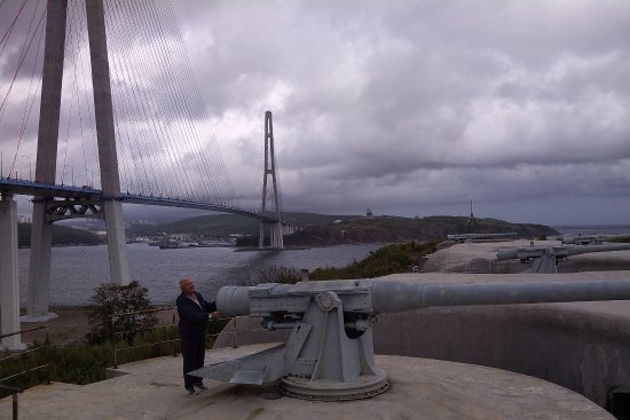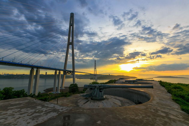 По пути к полуострову Тобизина проедем по двум мостам — Золотому и мосту на остров Русский и заедем на Новосильцевскую батарею, откуда открываются шикарные виды на окрестности Владивостока, кампус ДВФУ, остров Скрыплева и Русский мост.