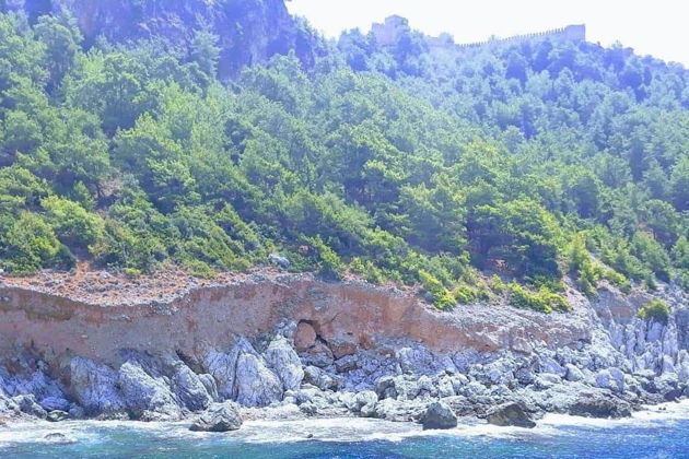 Прямо за живописным холмом, где стоит Красная Башня и возвышаются средневековые крепостные стены, находятся Фосфорная пещера и Пещера Влюбленных. Обогнув мыс, наше судно доставит вас на великолепный пляж Клеопатры, на котором всегда прозрачная вода, даже во время волн. Вы сможете поплавать в открытом море и даже встретить дельфинов. По нашему маршруту также есть остановка на пляже Улаш, который обладает кристально чистой водой и великолепным видом на бухту. По пути будет 3 остановки для купания.