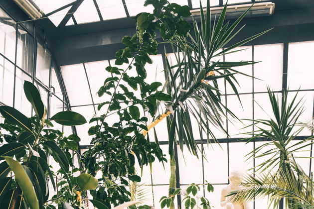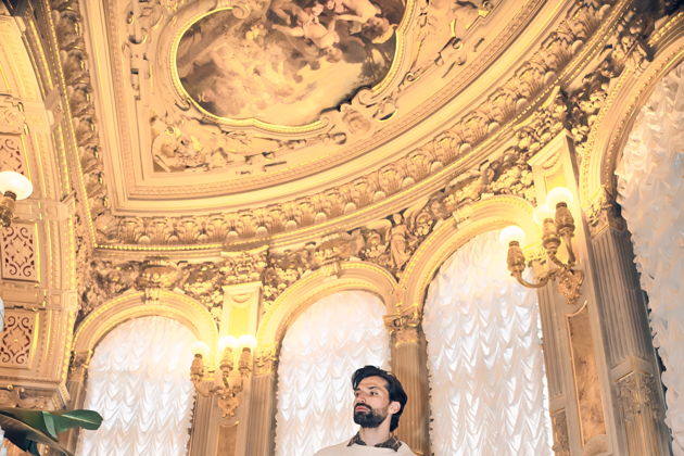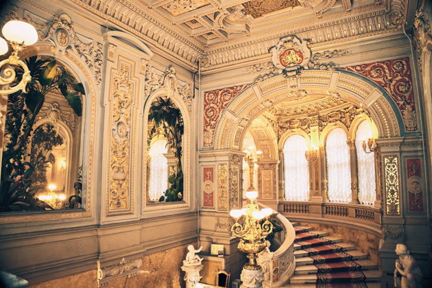 Зимний сад. Пальмы, рассеянный свет, барочная мебель и итальянский фонтан с фигурой морского чудовища начала XX века. Тихая точка внутри большого дворца.