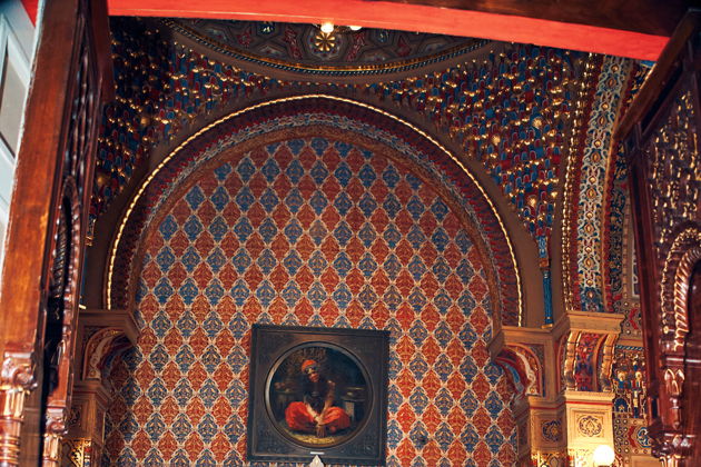 Мавританский будуар. Восточные мотивы, узорная лепнина, мягкий свет. Личная комната Марии Павловны, созданная под впечатлением от Альгамбры. Очень камерное и атмосферное место.