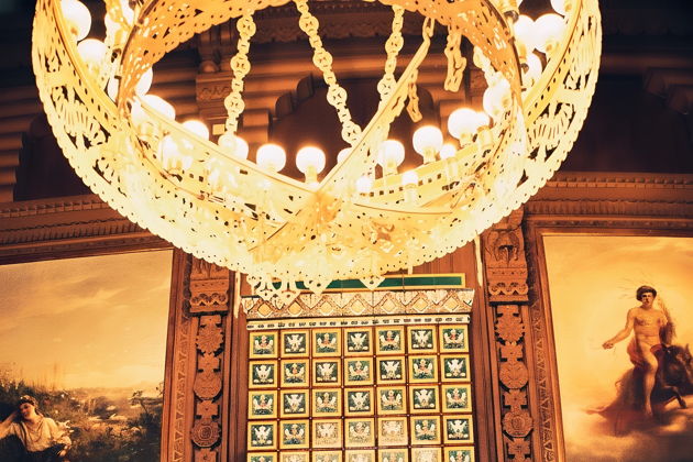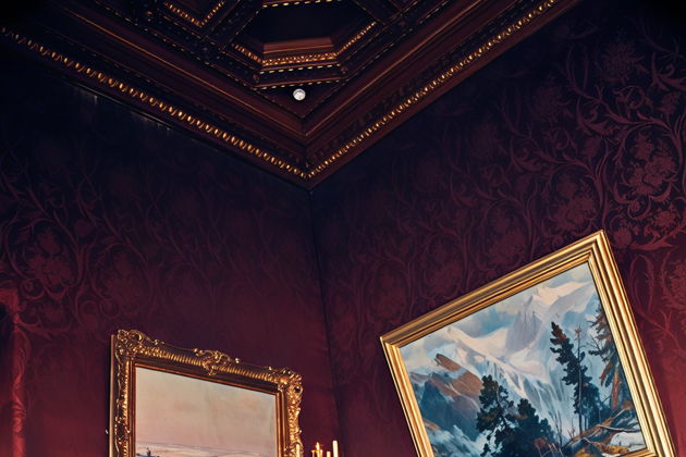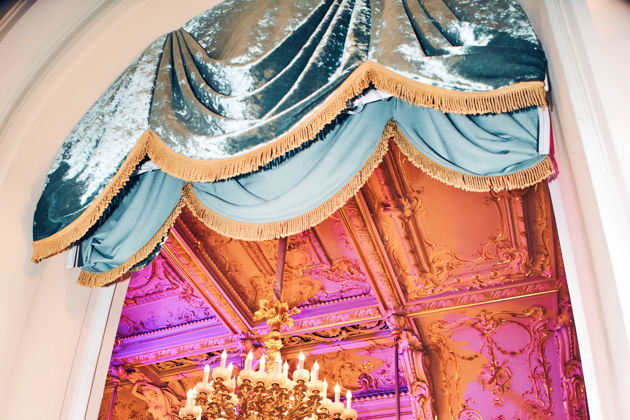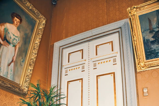 Малиновая гостиная. Шёлк, ренессансная мебель, венецианская люстра. Когда-то здесь проходили музыкальные вечера и закрытые светские приёмы. Атмосфера сохранилась — чувствуешь, что входишь в пространство, где всё настоящее.