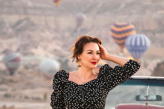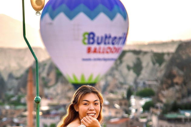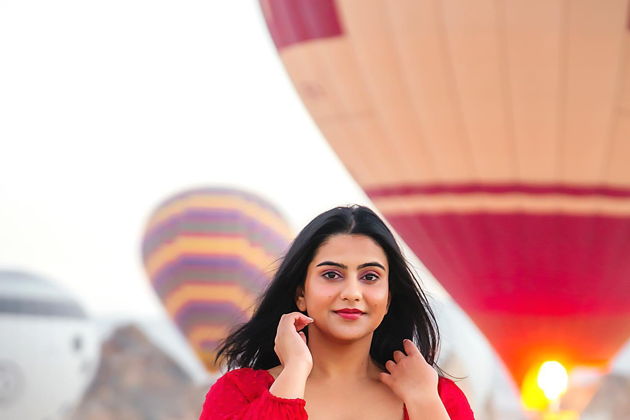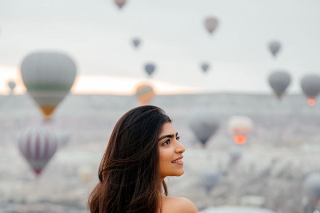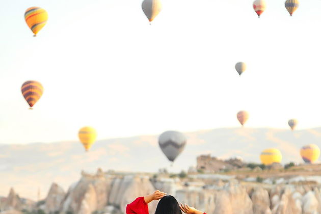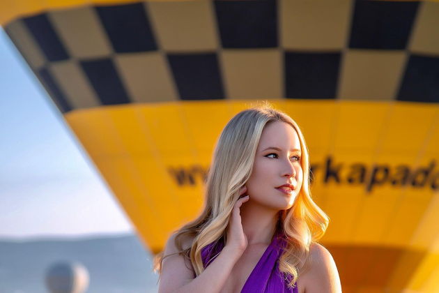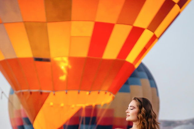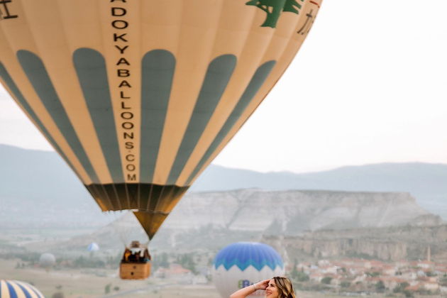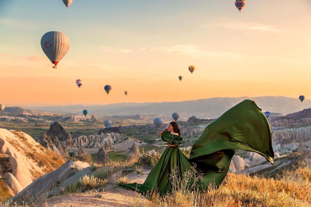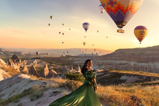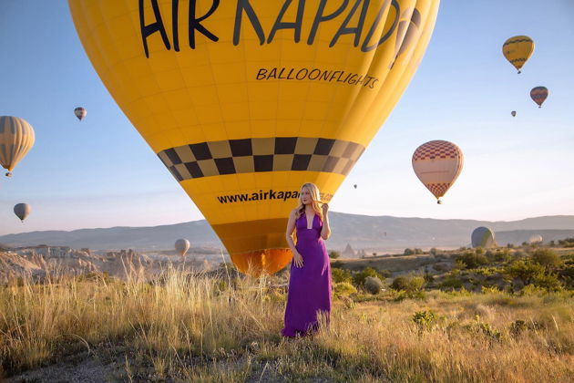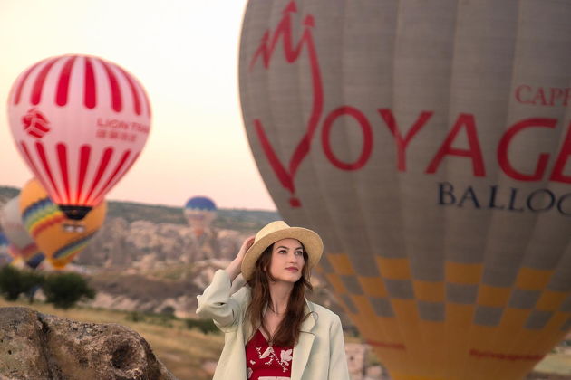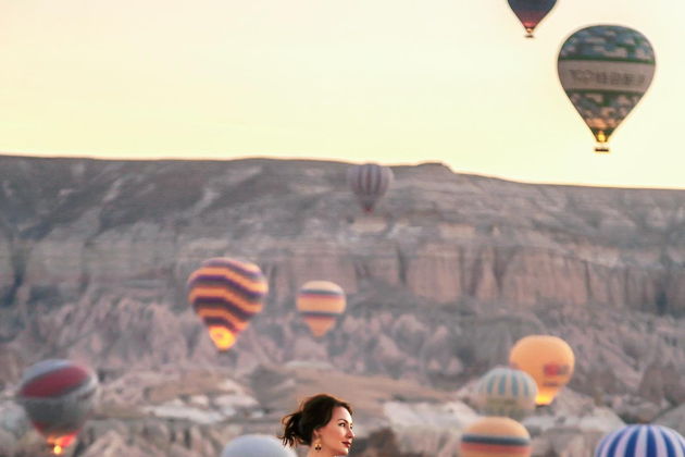Сказочная фотосессия в Каппадокии на фоне парящих шаров.