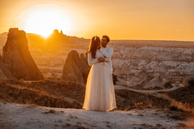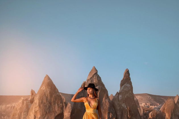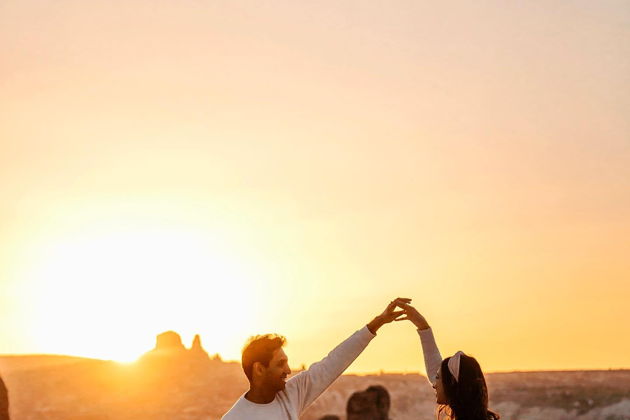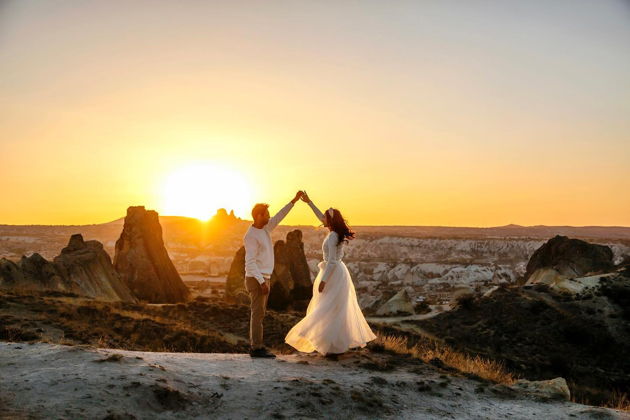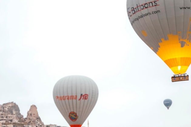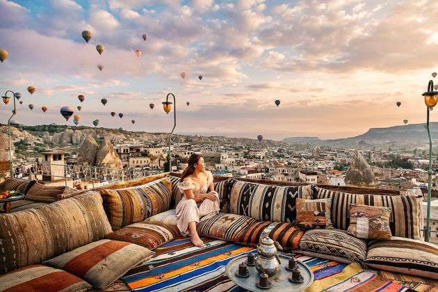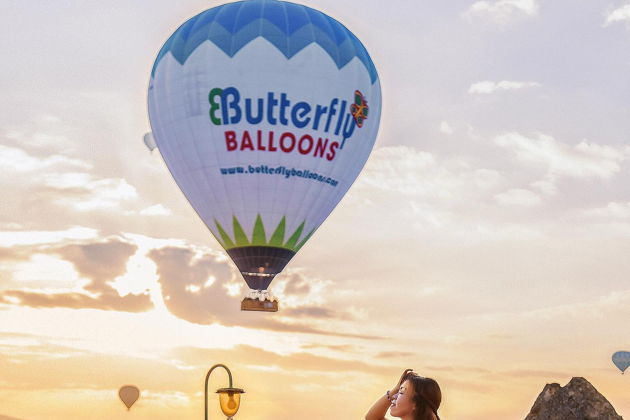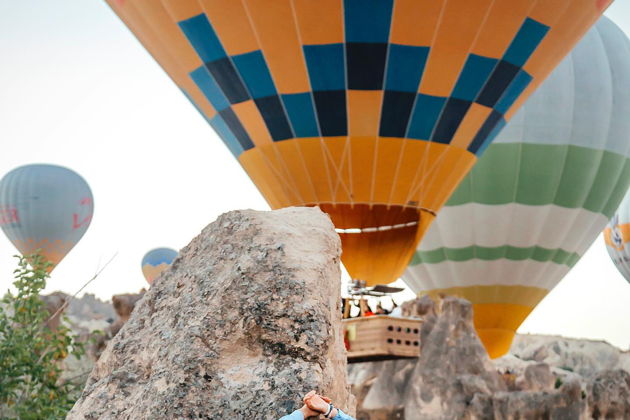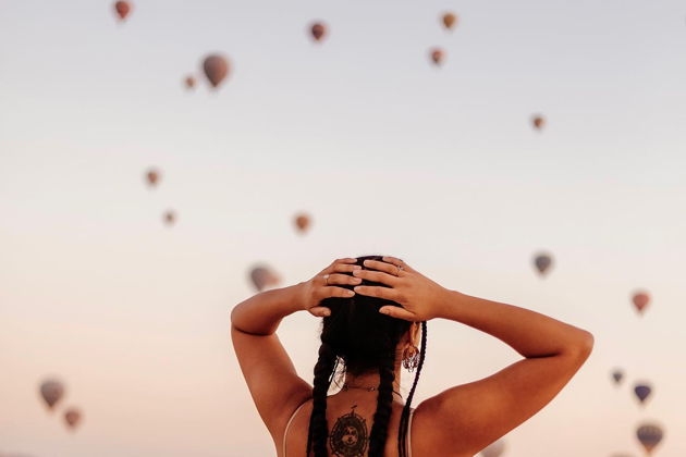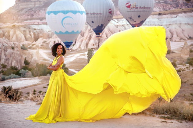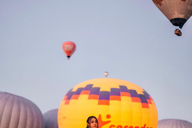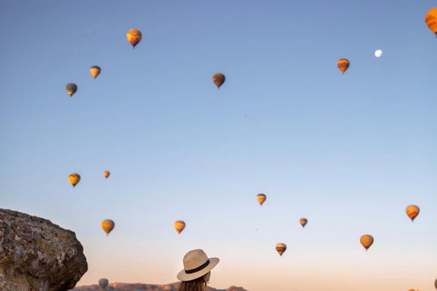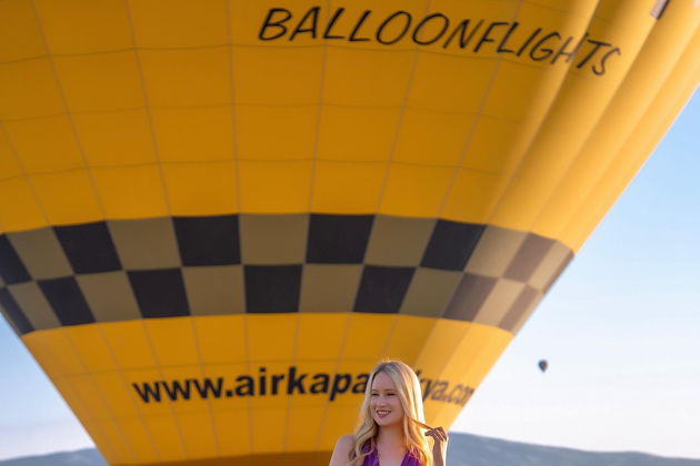 Сказочная фотосессия в Каппадокии на фоне парящих шаров.