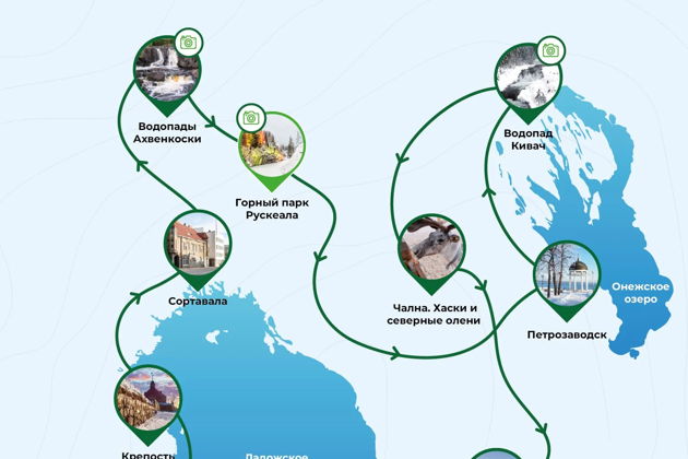 Топ-10 главных достопримечательностей раскроет вам, почему природа этих мест так манит туристов и множество людей едут изучать культуру и историю этого края. Маршрут составлен так, чтобы было интересно и детям и взрослым, а главное – вы узнаете, зачем в Карелию возвращаются снова и снова.