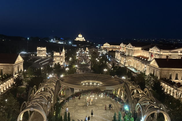 Новый Херсонес включает три пространства, посвященные христианству, Античности и Византии, а также Крыму и Новороссии. На территории бьют фонтаны, которые питает древняя река Герон, есть амфитеатр, храм-парк, "исторические" уголки с сувенирами и многочисленные кафе