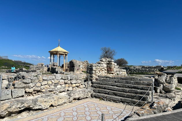 Но не менее интересен и вызывает восторг у всех православных людей, недавно отреставрированный Владимирский собор на территории старого Херсонеса. Невозможно оторвать глаз от его мозаичных фресок, это поистине великое произведение искусства. В маршрут экскурсии входит одна из лучших видовых площадок города с потрясающими видами на бухту и "золото" Херсонеса Таврического и Нового Херсонеса.
