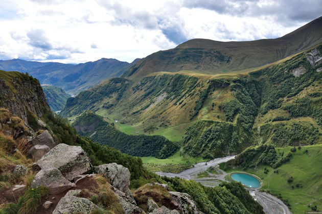 Здесь встречаются Черная и Белая Арагви — два потока, два цвета, соединяющиеся в единое русло. Природа сама рисует символ гармонии и единства.