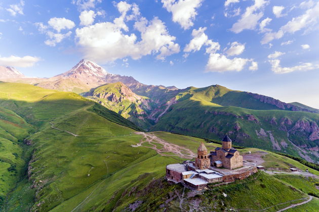 Финалом путешествия станет легендарный храм XIV века, возвышающийся на высоте более двух тысяч метров у подножия Казбека. Кажется, что он парит над облаками, а панорама гор вокруг захватывает дух. Гергети — это символ духовности и одна из самых впечатляющих достопримечательностей Грузии.