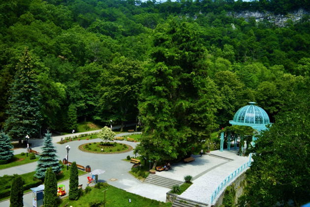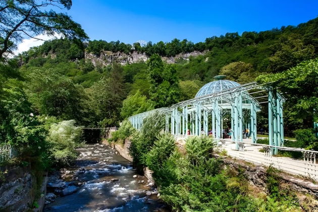 После посещения бассейнов мы направляемся в Центральный парк Боржоми. Здесь можно попробовать знаменитую минеральную воду из источника, прогуляться среди деревьев, увидеть реки, мостики и красивые фотолокации.